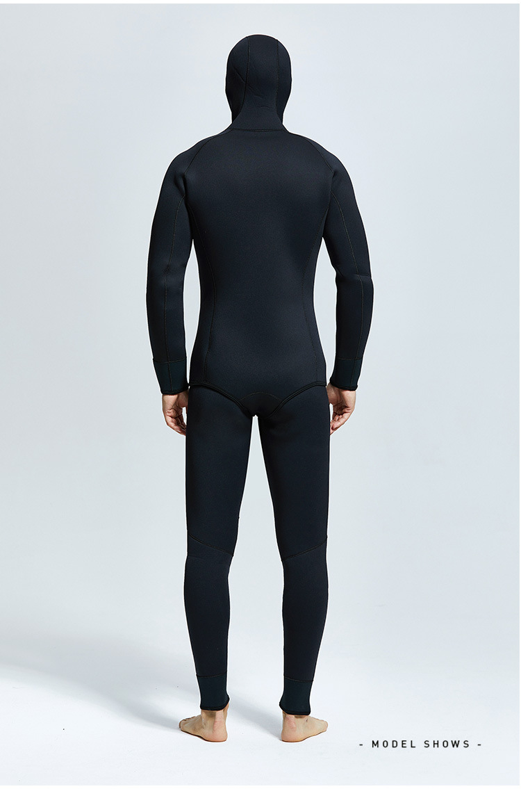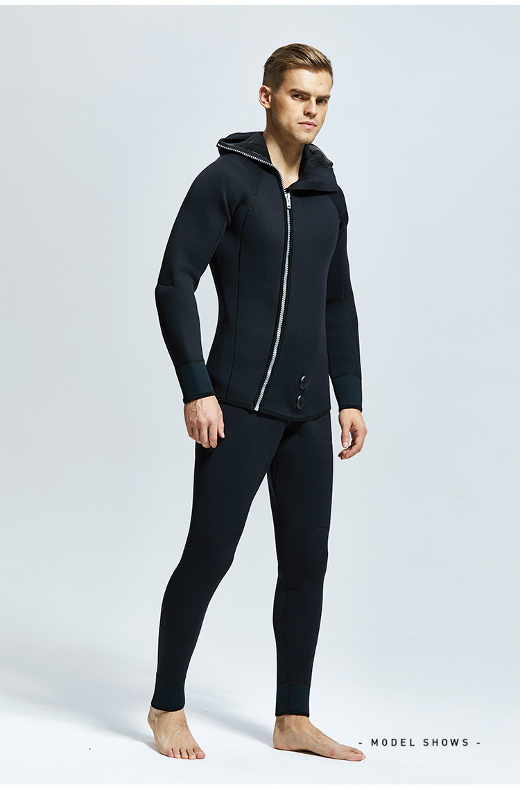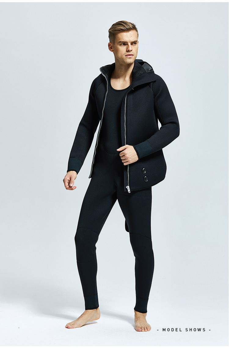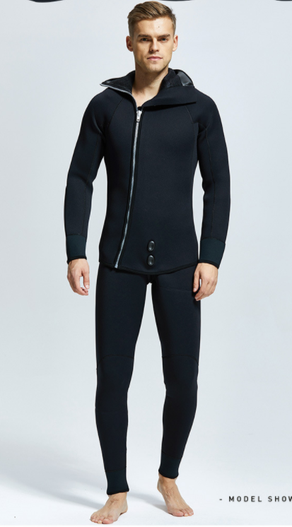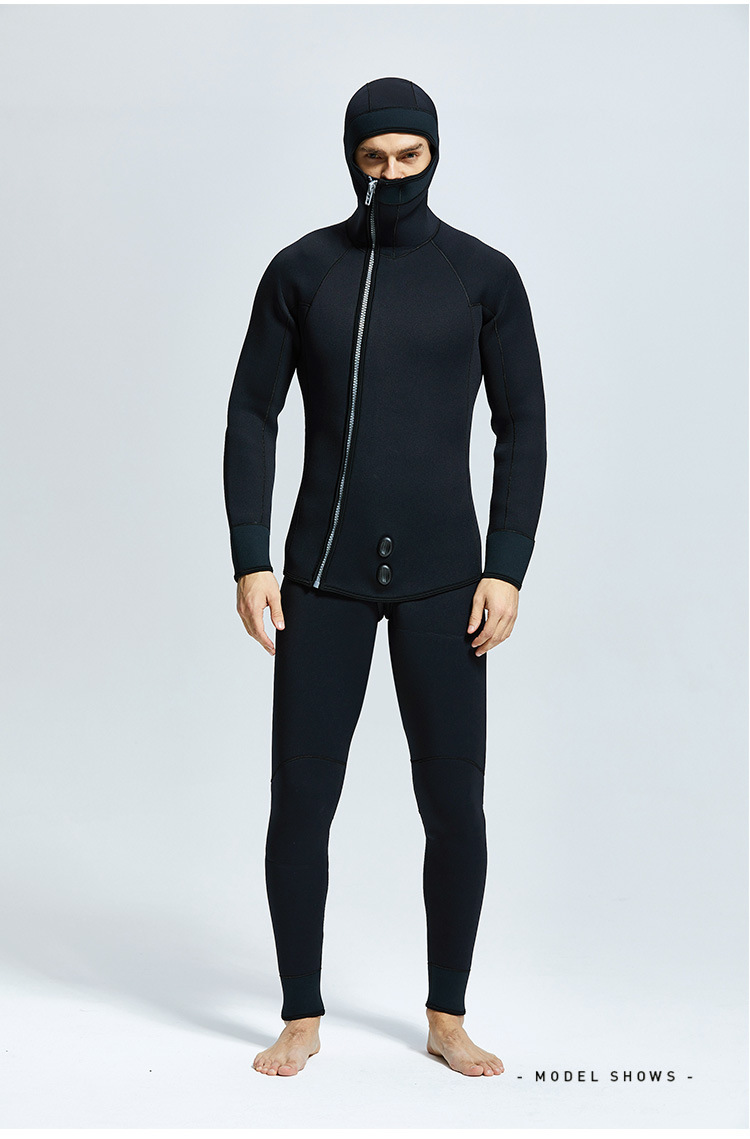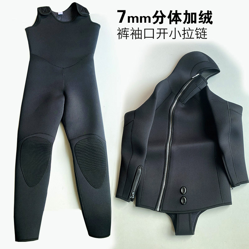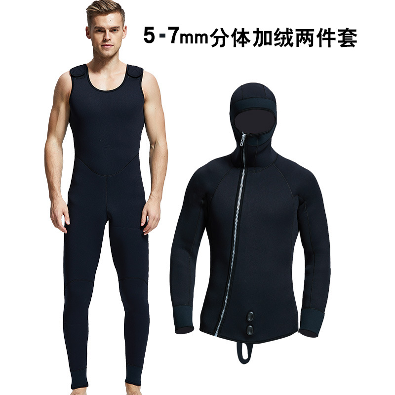5-7mm Diving Suit Neoprene 2pieces Wetsuits Men front Zipper Full Body Warm scuba diving Suit :Rubber diving suit with split body and fleece diving suit, cold resistant and warm shoulder strap pants, top and hood