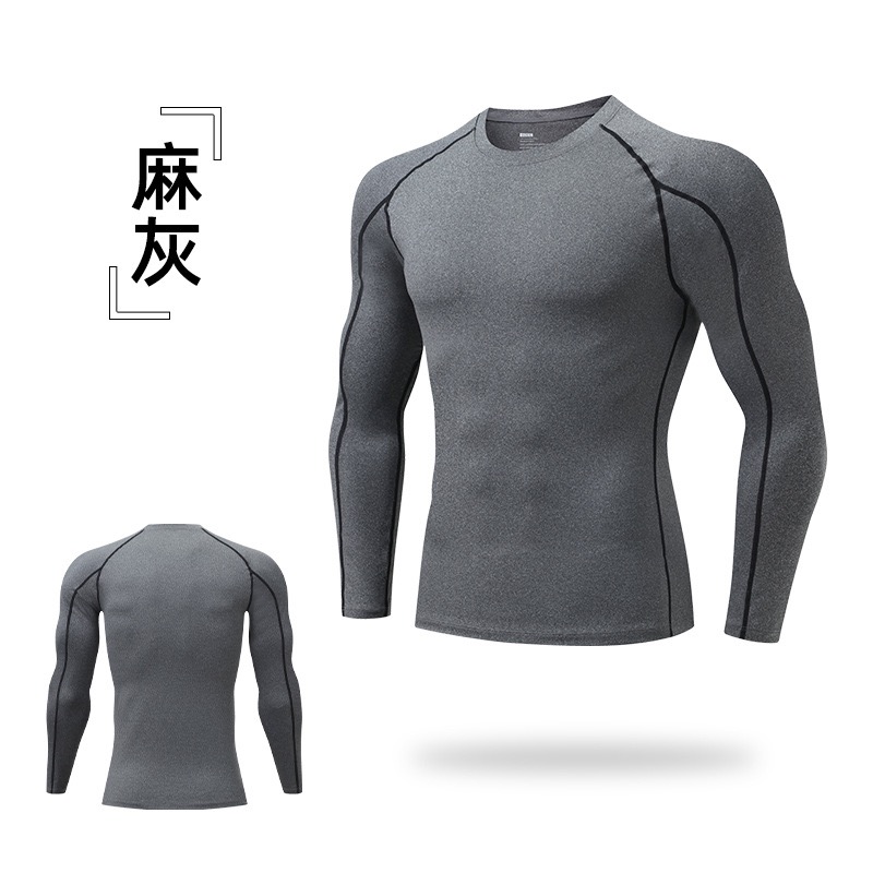 Compressions shirt sportswear compression T shirts:Customized logo men’s compression tights, plus size cross-border fitness long-sleeved shirts, quick-drying men’s training wear.