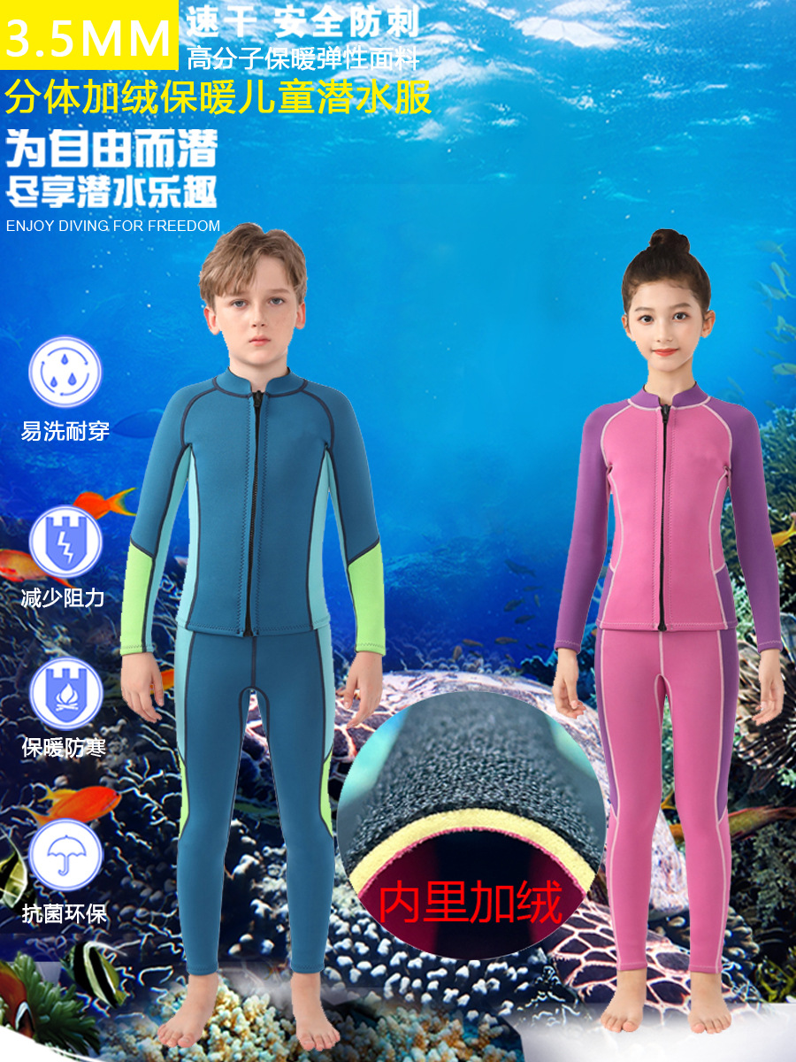 Custom 2026 children’s diving suit 3.5mm split surfing and snorkeling suit:2026 Spot children’s diving suit 3.5mm split body fleece warm swimsuit men’s long sleeved sun protection surfing and snorkeling suit women