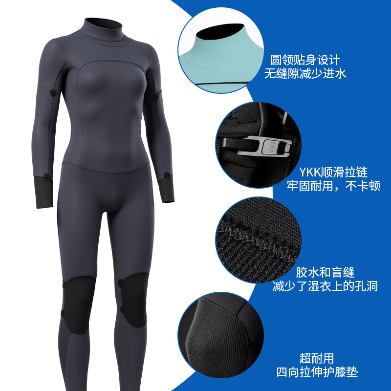 Custom outdoor long-sleeved women’s one-piece wetsuit for snorkeling:Cross-border direct supply of warm long-sleeved women’s one-piece wetsuit for snorkeling, beach, and outdoor use; factory customization and wholesale available.