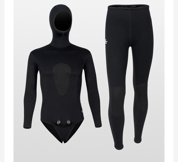 Diving suit 3MM split hooded hunting suit, cold resistant and warm diving suit, free diving surfing winter swimsuit, fishing and hunting suit
