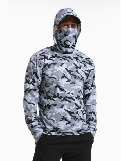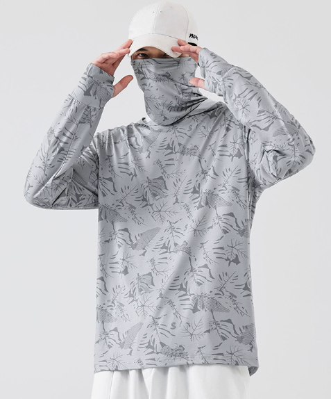 Men’s Sun Hoodie Fishing Shirts:Summer Ultra-Thin Printed Sunscreen Shirt, Face Covering, Ice Silk Breathable UV Protection Fishing Shirts for Men
