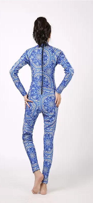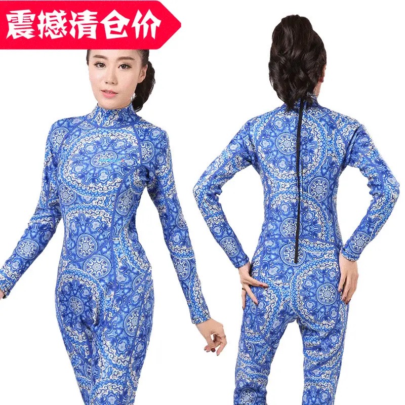 Manufacturers wholesale 3mm diving suit women’s national blue and white porcelain thick warm sunscreen diving suit one-piece long sleeve trousers