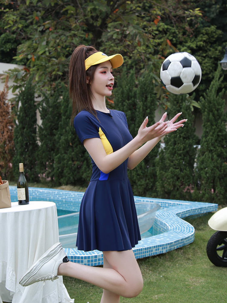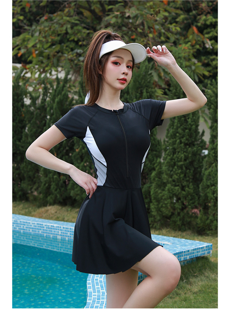 wetsuit alternative wetsuit dress women shorty swimsuits:Short sleeved conservative slim fit and slimming jumpsuit style swimsuit for women with sporty design and oversized zipper surfing diving suit